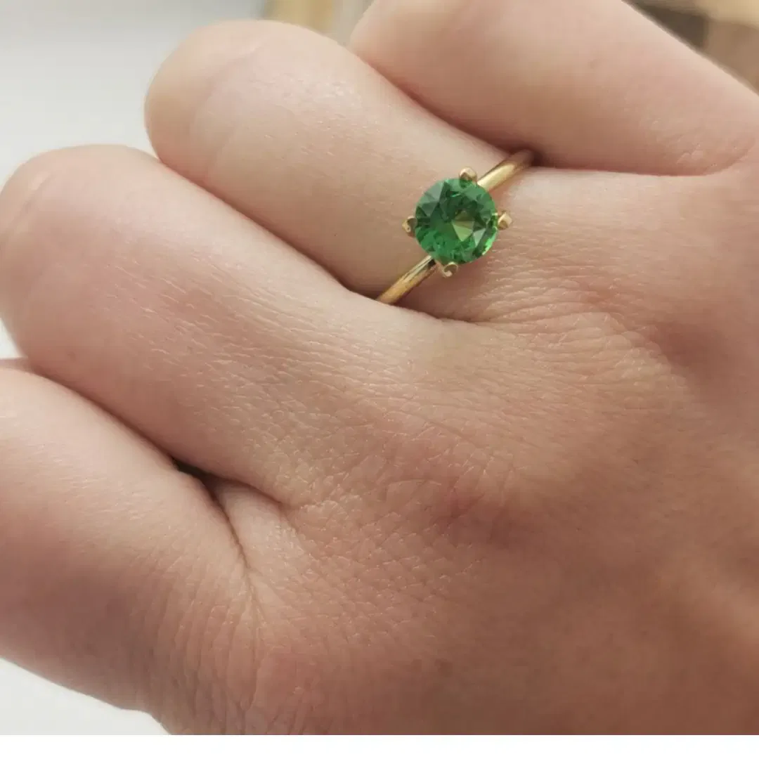 This round shape tsavorite garnet has a vivid green body hue, with superb saturation.